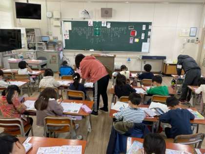 本日の1年生の国語は、「す」と「ん」を学習しました。子どもたちが考えた言葉が色々と出てきました。