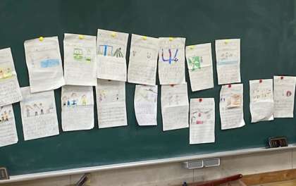 今日は、かいてきた絵日記をもとにゴールデンウィーク中にしたこと、自分の感じたことを発表していました。