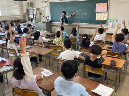 『大江っ子 チャレンジ150!』の学級目標を話し合い、「大江小学校をきれいにそうじする」に決まりました。日直がチェックし、できていたらシールを貼っていきます。150枚が目標です。
