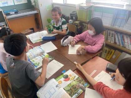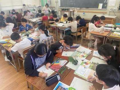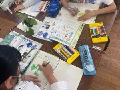 本日の4年生の理科は、ヘチマとヒョウタンの苗と種の観察をしました。