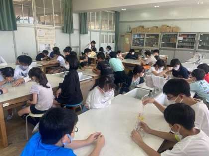 本日の6年生の理科は、でんぷんとヨウ素液の反応を利用して、唾液のはたらきを調べる実験をしました。