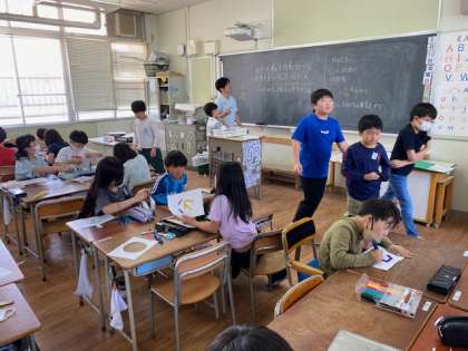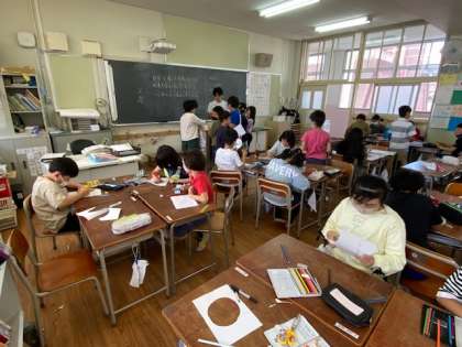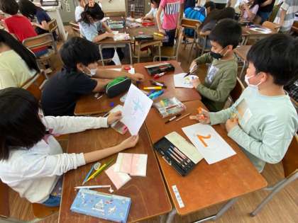 4年生の教室に行ってみると、学級目標を一人ひとりの力で完成させる作業をしていました。
