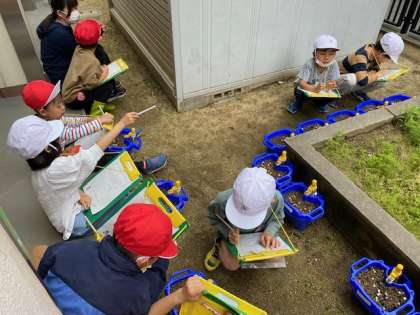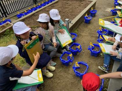 1年生は、自分が植えた種が発芽する喜びであふれていました。