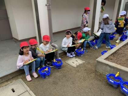 先週植えたアサガオの種。今日、早くも「芽が出てきた!」とスケッチしに行っていました。