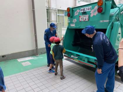 今日4年生は、学校に大阪市環境事業局の方に来ていただき、パッカー車や色々なゴミの分別についてのお話を伺ったり、実際パッカー車を操作したりしました。