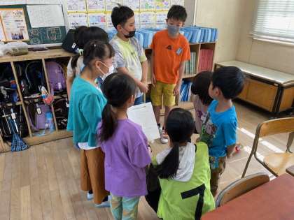 今日のなかよし班活動は6月14日に行われる『わくわくランド』に向け、当日、どんなお店を出すのかを話し合いました。