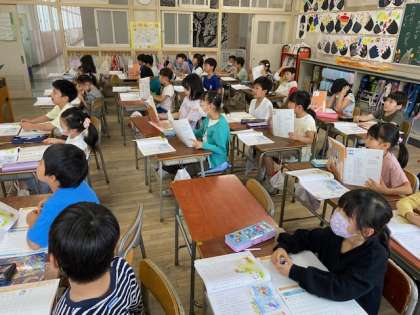 2年生の道徳では、『おげないリスさん』というお話をもとに友だちづくりについて考えていました。