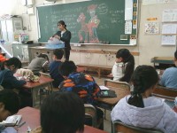 3年生の社会科では、今週始めに社会見学で行った『あべのハルカスの展望フロア』で発見してきた大阪のまちの様子について発表していました。