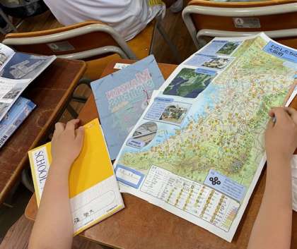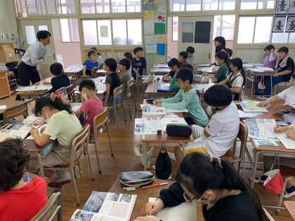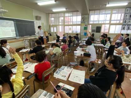 4年生の社会科では、これまでの体験を振り返り、おうちから社会見学のような、どこかの工場などの見学に行った経験について発表していました。