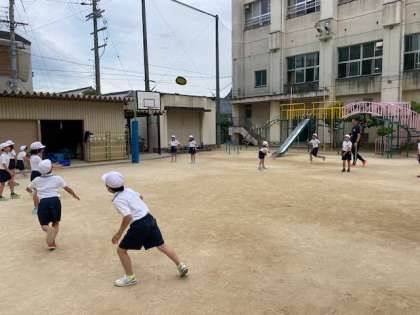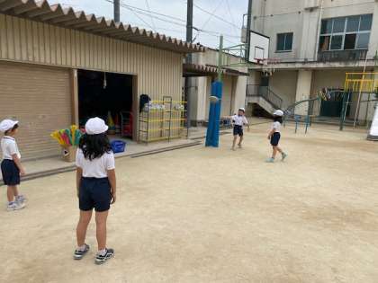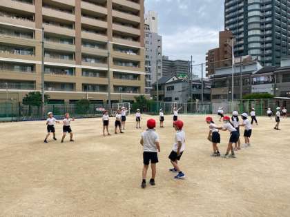 3年生の体育では、フリスビーに取り組んでいました。