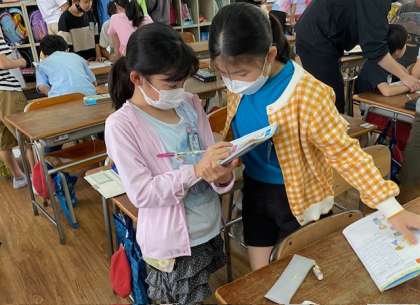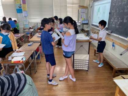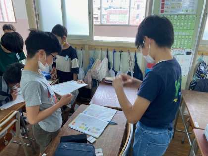 4年生の外国語活動では、友だちの好きなことについて尋ねていました。