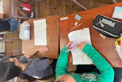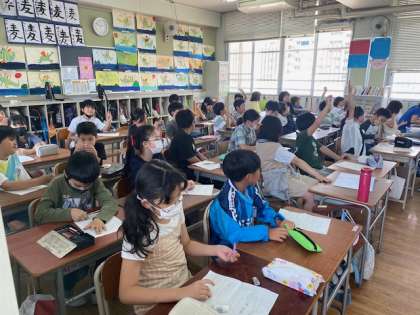 4年生の教室を覗いてみると、5月31日に行う『大江っ子チャレンジ150!大宣言大会』に向けて、一人一人が考えた自分の『チャレンジ150!』について発表し合っていました。