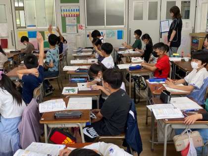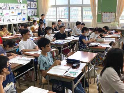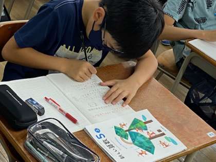 5年生の算数では、『辺の長さが小数の図形の面積や体積を求めよう』ということで取り組んでいました。