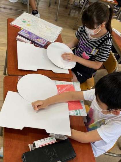 3年生の図工では、『くるくるランド』と題して、円が回転するしくみを活かした製作に取り組んでいました。