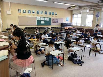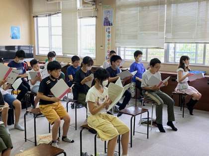 自然体験学習で歌う歌の練習も兼ねています。