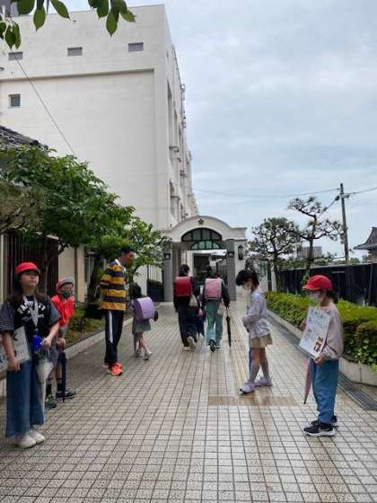 今日は雨のち曇り。子どもたちが登校してくる時には、雨がほとんど止んできていました。