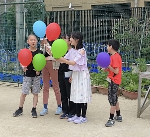 リリースして子どもたちの頭上に色とりどりにバルーンが舞い上がると、何とも言えない夢のような空間が広がり、子どもたちの歓声が上がりました(^^)
