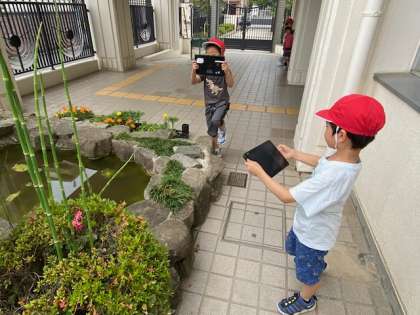 1年生の生活科では、学校に植っている植物や咲いている花、生き物(虫)などを見つけて学習者用端末で記録していました。