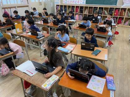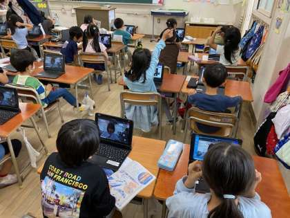 子どもたちのとって初めての経験で、自分のパソコンに担任の先生が映し出されると歓声があがっていました(^ ^)