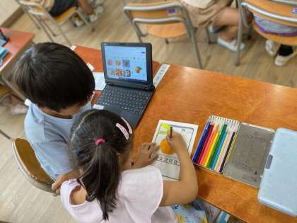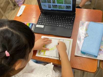 1年生の生活科では、『大江っ子チャレンジ150!』の取り組みとして、学校に植っている植物や咲いている花、生き物(虫)などを150種類以上調べます。