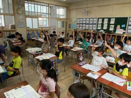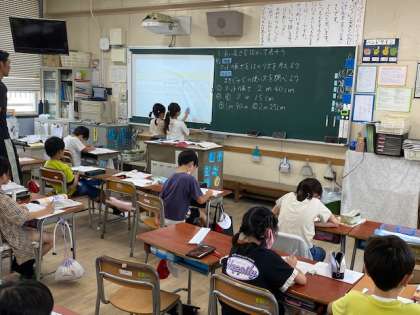 練習問題を解いたあと、前の黒板に書きたい子の手が勢いよく挙がっていました(^ ^)