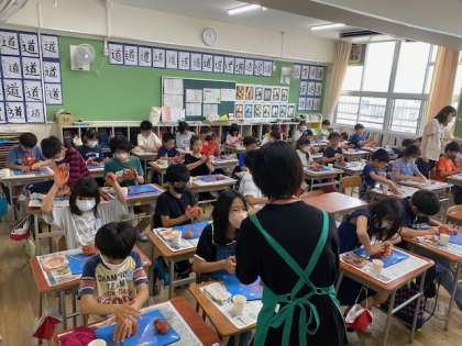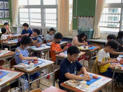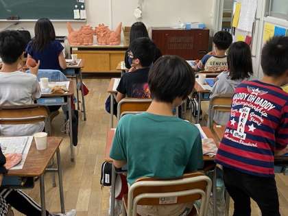 5年生の図工では、シーサー作りを開始しました。