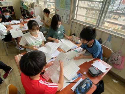 6年生の国語では、『風切るつばさ』という物語の学習に取り組んでいました。2羽のタンチョウの会話から、それぞれの考えや気持ちを考えます。