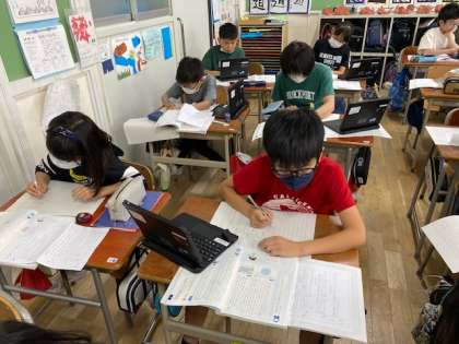 5年生の国語では、『環境問題について報告しよう』というテーマで書かれた文章を読み、問題だなと感じた環境問題を取り上げ、それを友だちに分かりやすく伝えることに取り組んでいます。