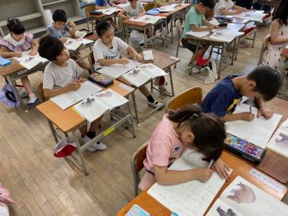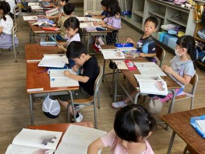 今日は、教科書を見ながら、指定された箇所を丁寧に書き写していました。
