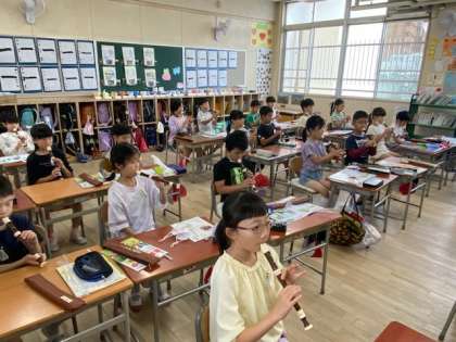 指の腹でリコーダーの穴を押さえ、きれいな音を出していました(^^)