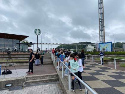 ほぼ予定通り、淡路サービスエリアに着きました。子どもたちはバスの中で好きな歌を歌うなど、大変ノリノリです。