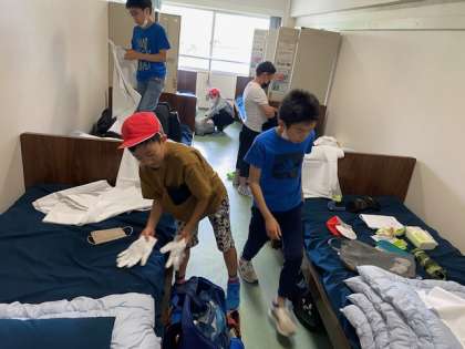 昼食後、子どもたちはリネン室に寄り、シーツ1人当たり2枚と枕カバー1枚、班の人数分を係の子が持っていきました。