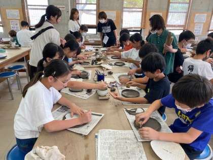 なかなかの力作が作られようとしています。コップや湯のみ、茶碗はなかなか難しそうです。お皿チームはデザインにこだわっています(^^)