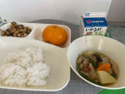 鶏肉と野菜の煮もの、ひじき豆、みかん(冷)