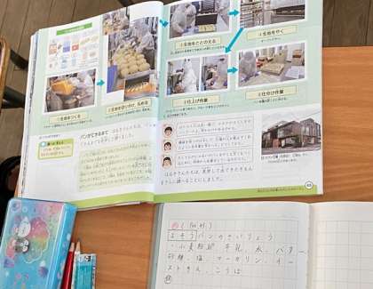 3年生の社会科では、『パンができるまで』ということで、パン工場の見学には行けませんが、その分、パン作りに取り組んでいる様子を動画や教科書で、調べていきます。