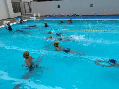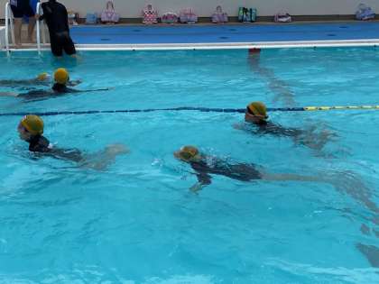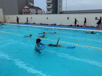 今日の5年生のプール水泳では、25メートルを平泳ぎで泳ぐことにチャレンジする子、平泳ぎが苦手な子、クロールが苦手な子に分かれて習熟の速さに応じた練習をしていました。