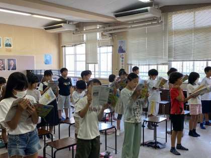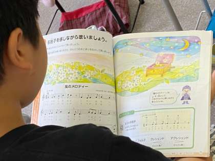 4年生の音楽では、『風のメロディー』という曲の歌い方について学んでいました。