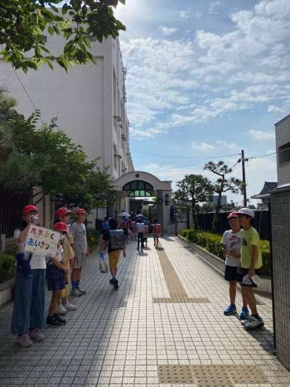 子どもたちは、この暑さに負けず、今朝も元気に登校しています(^^)