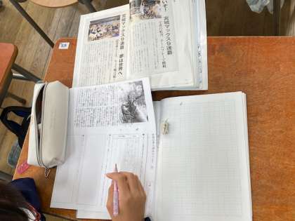 5年生の国語では、『新聞記事を読み比べよう』との目当てで学習を進めていました。