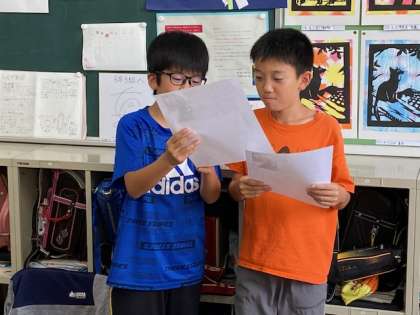 まずは与えられた文章を読んでタイトルをつけます。次にその要点をまとめます。そこまでを個人で行い、友だちと意見交流します。