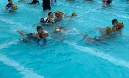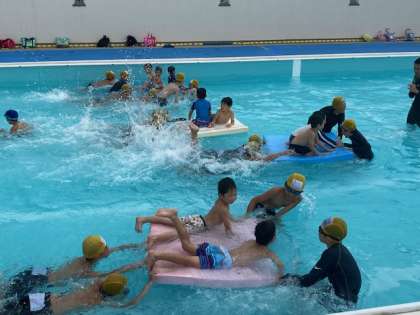 前半は体育館でのゲーム。後半はプールで水遊びです。