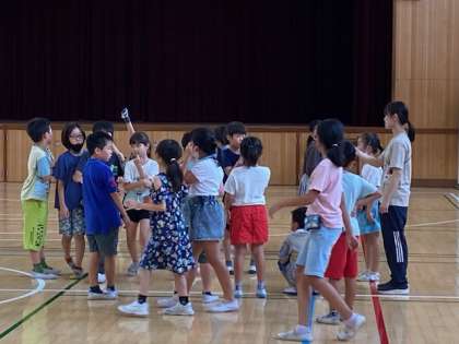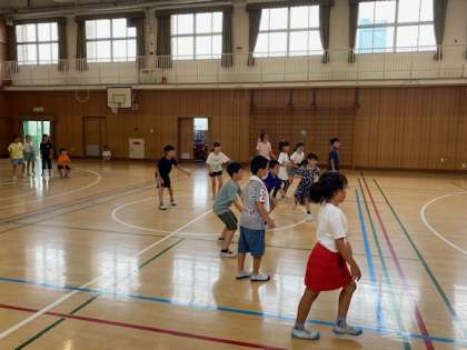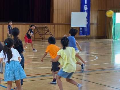 前半は教室で漫才も披露されたそうですが、体育館ではドッジボールで盛り上がっていました。子どもたちは1学期の思い出の締めくくりのような『お楽しみ会』を存分に楽しんでいました(^^)