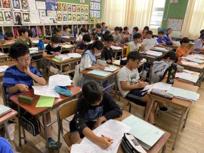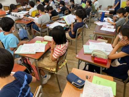 5年生の教室をのぞいてみると、社会科のテストなおしをしていました。
