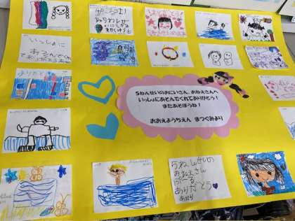 また今日は、先週交流した大江幼稚園の子たちが『ありがとう』の気持ちを込めて作ってくれたものを持ってきてくれました。