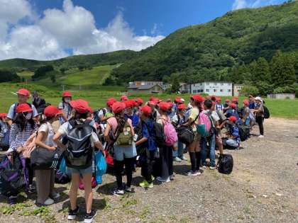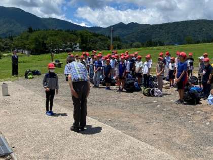 代表の子から、この林間をとても楽しみにしていたこと、お世話になりますがよろしくお願いしますということが伝えられ、全員で宿舎の方に「よろしくお願いします」と言いました。