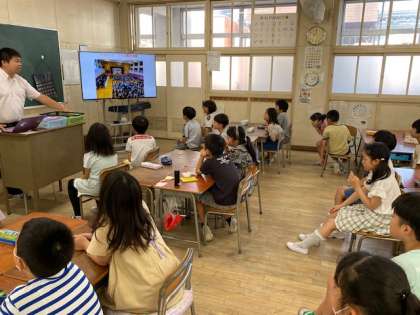 3年生の教室では、2学期の行事をスライドを見てイメージしていました。学校行事に加えて、社会見学のスライドに歓声があがっていました(^^)
