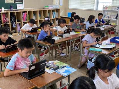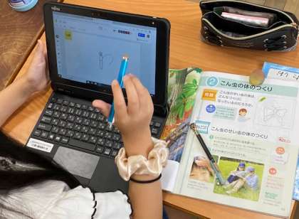 学習者用端末に示された頭と腹に他の部位を描き加えていきます。
