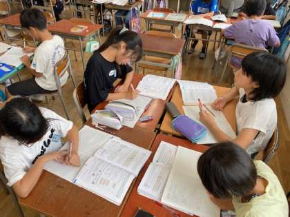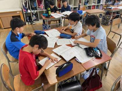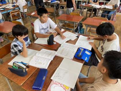 個々に解いたあと、グループで教え合ったり問題を出し合ったりと、学んだことを深めていました。