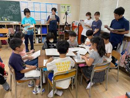 今日の3年生の国語は『グループの合い言葉をきめよう』の学習を、研究授業として行い、たくさんの先生方も一緒に学びました。