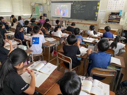 教科書に載っている大阪天満宮の方のお話や、教科書の動画資料から、どのようにして天神祭が支えられているか、どのようなことをして伝統を受け継いでいるかなどを学んでいました。